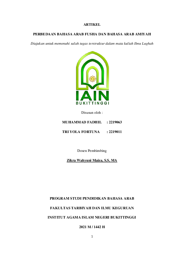 Pdf Artikel Perbedaan Bahasa Arab Fusha Dan Bahasa Arab Amiyah Muhammad Fadhil Academia Edu